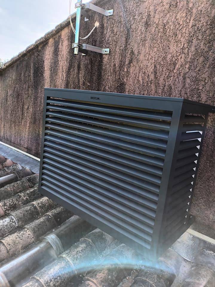 Pour l'esthétisme, le client a souhaité également faire poser un cache clim en aluminium anthracite pour son groupe extérieur.